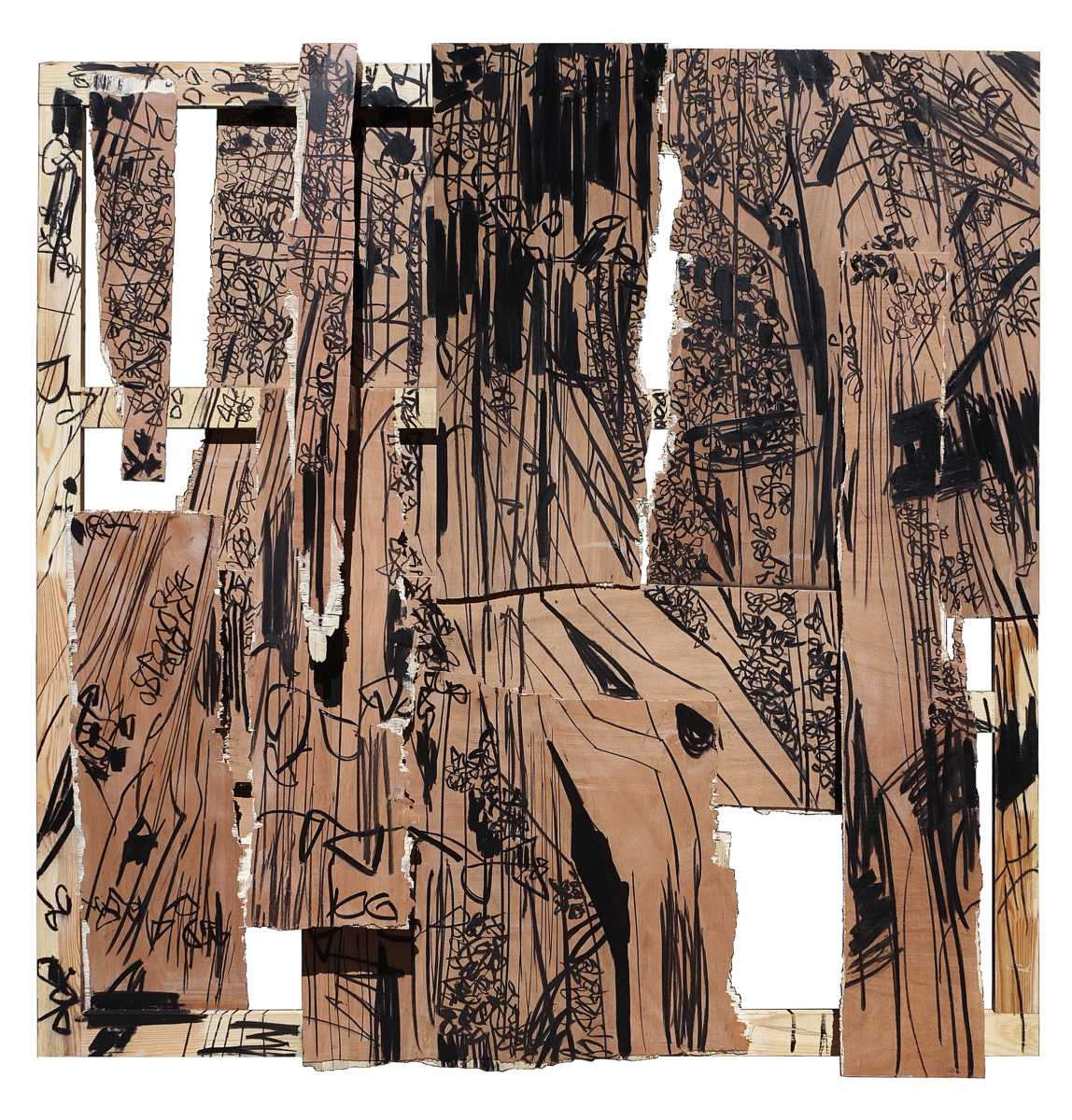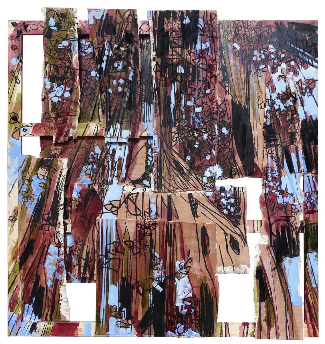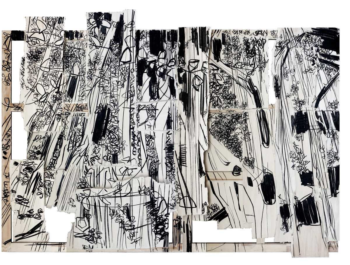 “Hago espacio. Obra que es espacio en sí misma. Es la intervención en la materia, a la par que la representación de ésta”, expresa la artista. “Puesto que toda obra es creación-destrucción, y no existe una sin la otra, en mi obra empecé a cortar, romper y desgarrar, para remendar y reconstruir a partir de los despojos”.