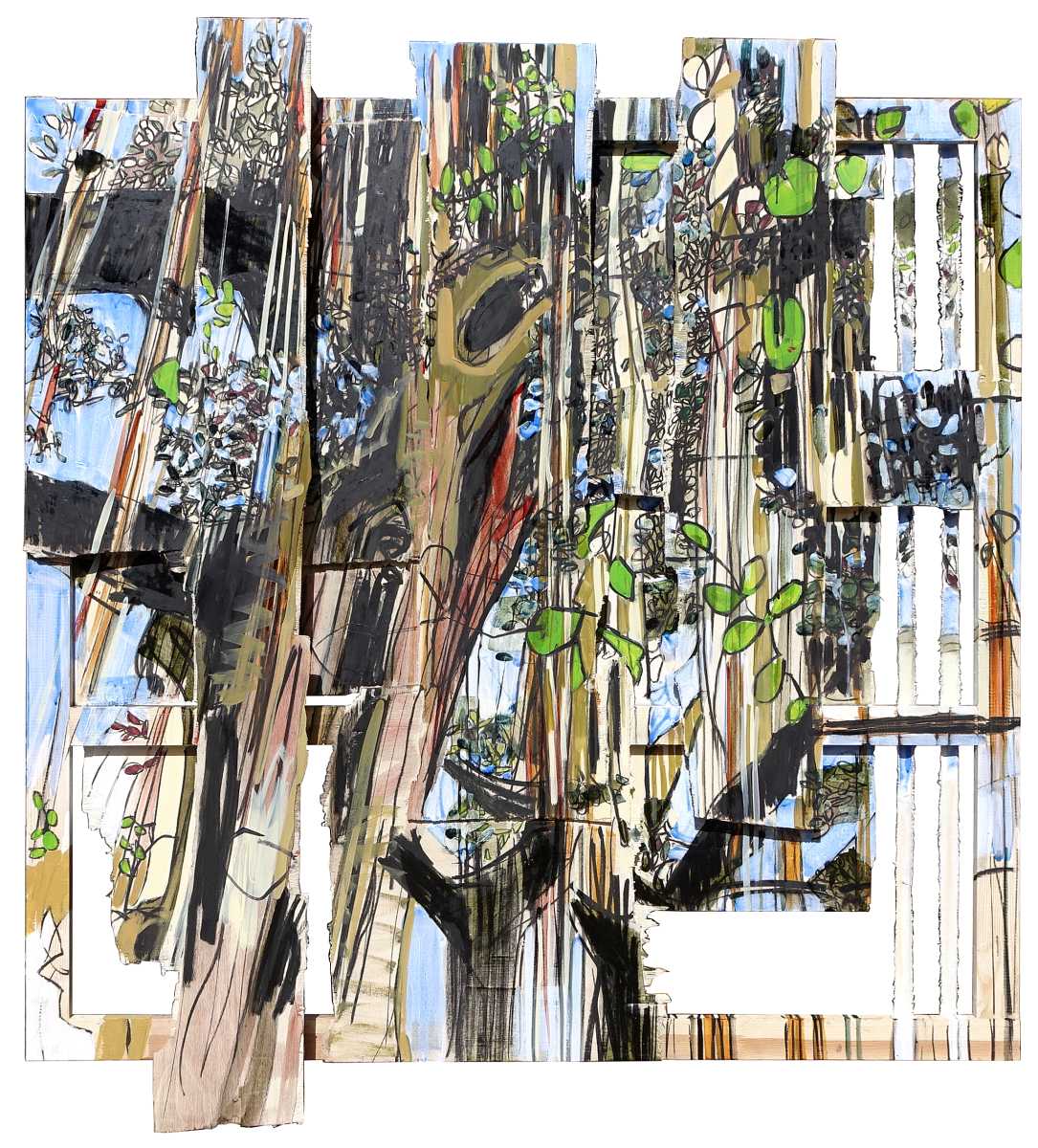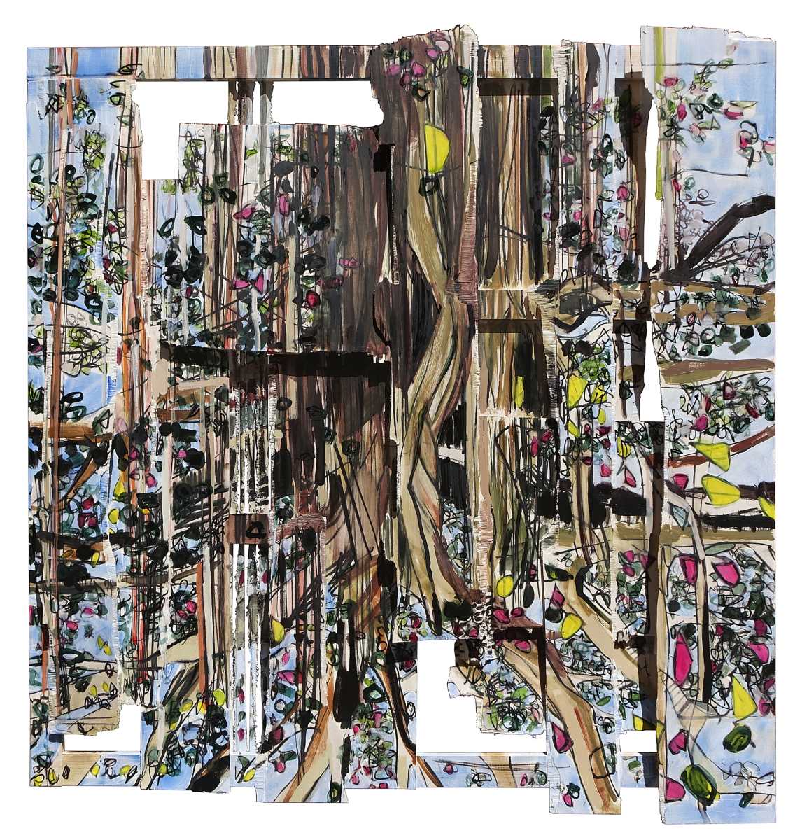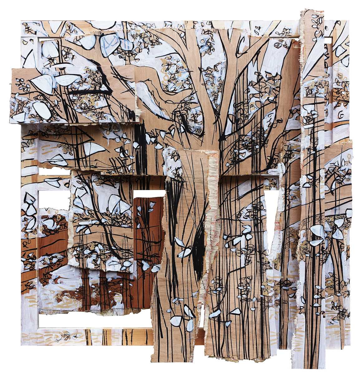 “Hago espacio. Obra que es espacio en sí misma. Es la intervención en la materia, a la par que la representación de ésta”, expresa la artista. “Puesto que toda obra es creación-destrucción, y no existe una sin la otra, en mi obra empecé a cortar, romper y desgarrar, para remendar y reconstruir a partir de los despojos”.