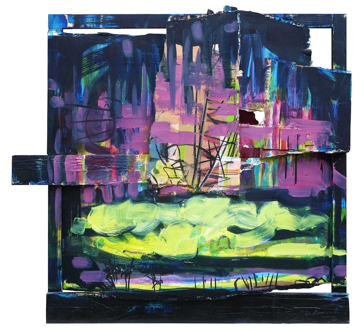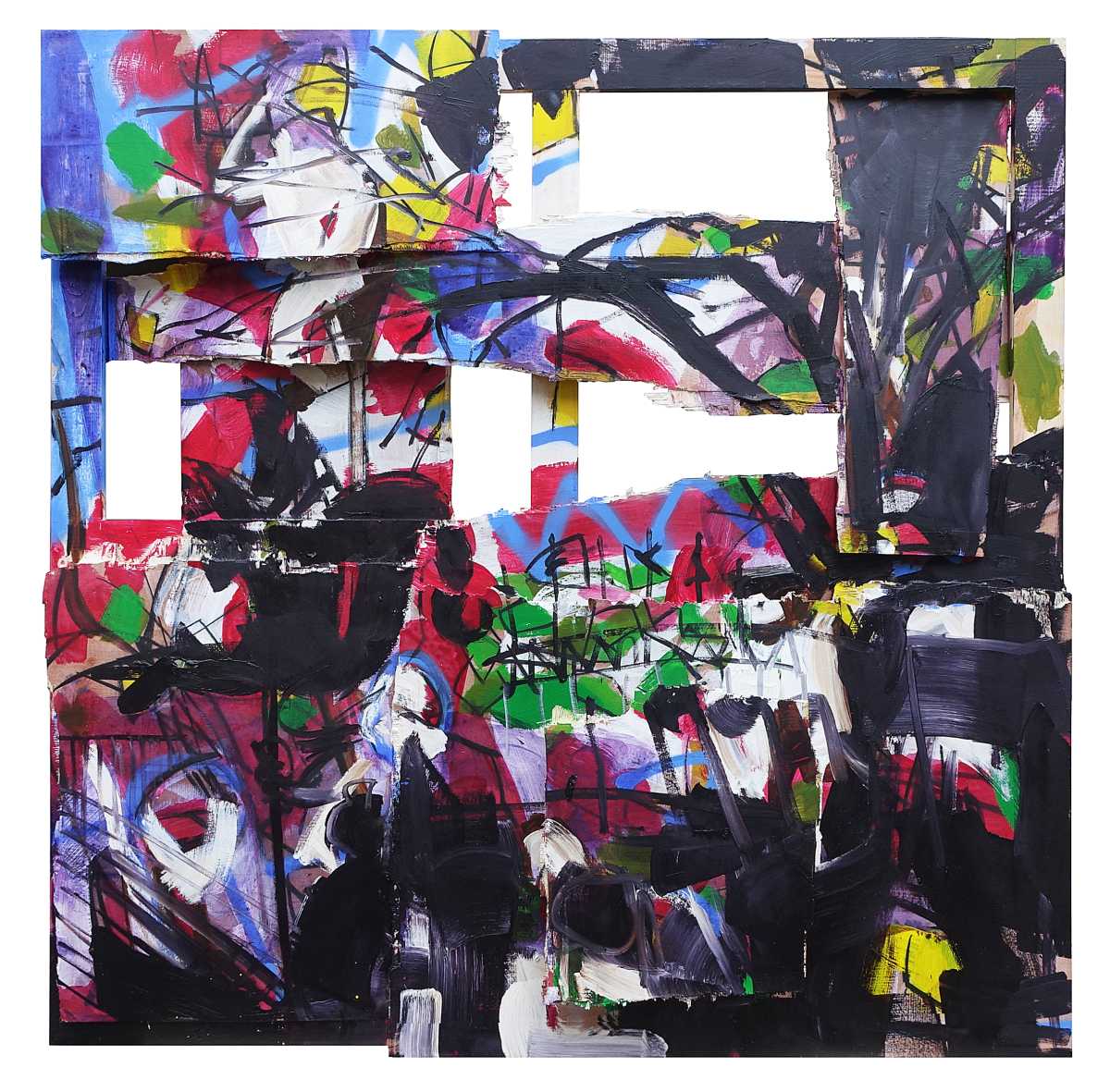 Sobre estructuras tridimensionales, su pintura, de trazo muy personal, busca la pureza del arte en la mezcla de materiales y de formas, arrastrando al espectador en su corriente de color y movimiento.