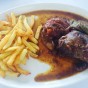 Cocina tradicional en un espacio renovado pero que guarda todo el carácter de su esencia rustica,con parafernalia medieval como escudos y una colección muy interesante de taxidermia ciengetica ,donde podemos observar cabezas de jabatos,ciervos,palomas torcaces de la zona resaltan en las paredes de piedra,preparando nuestras mentes para degustar los platos de caza.